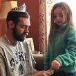 | per her dad, out on the town, an outing in t/ springtime for her father, too and her friends as well |
