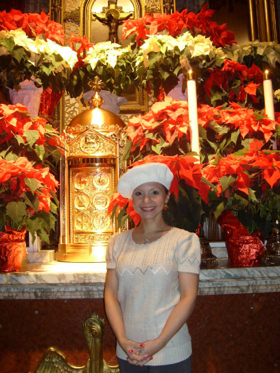 | Vanessa with Santa, and the St. Anthony statue outside |